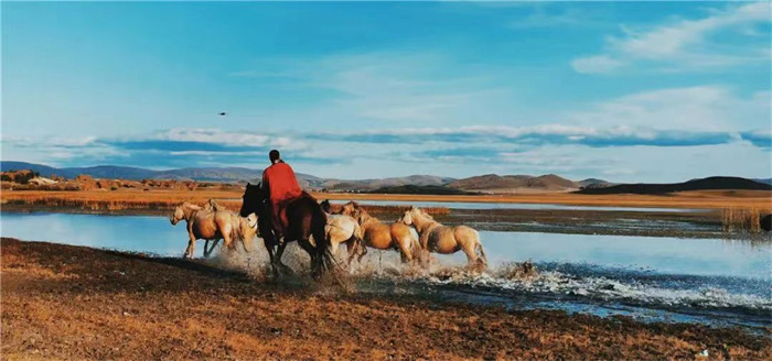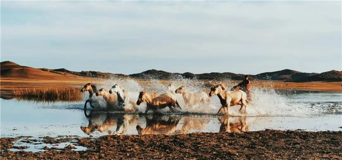 下午前往骑马场体验骑马,杨树背沿线,大牧场。最后我们步入将军泡子,感受乌兰布统古战场的辽阔,欣赏民俗表演——马踏水花,看骏马奔腾在湖水之中,溅起阵阵水花,仿佛珍珠一样洒落。