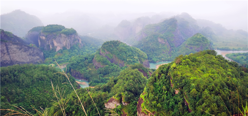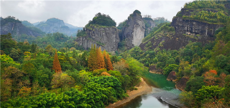 武夷山以一溪、九涧、十八泉、三十六峰、五十四石、九十九岩、一百零八景而享誉中外。