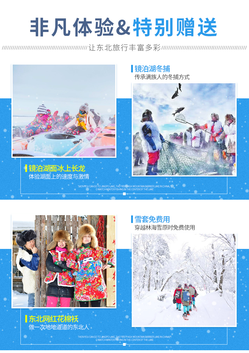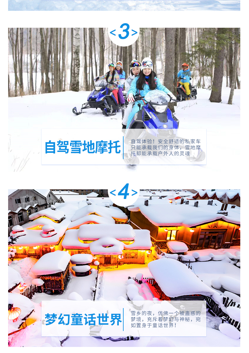 雪乡—撒欢大本营—自驾雪地摩托—激情滑雪圈—镜泊湖冬捕—敦化