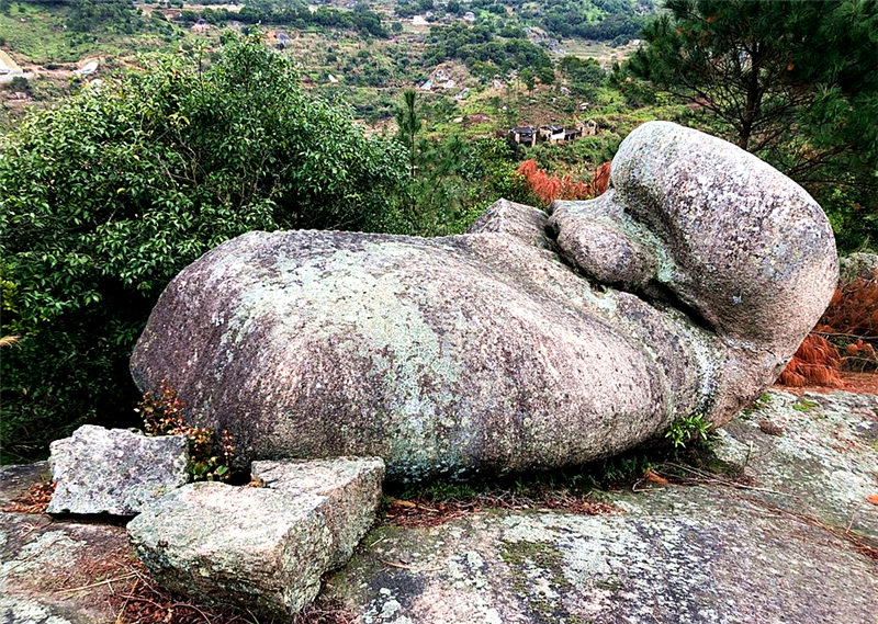 狐狸再狡猾也斗不过好猎手。爬上大岩,狐狸岩静卧在一群花岗石巨岩下,从它的左侧下方端详,果然是惟妙惟肖老狐狸,惹人喜爱。