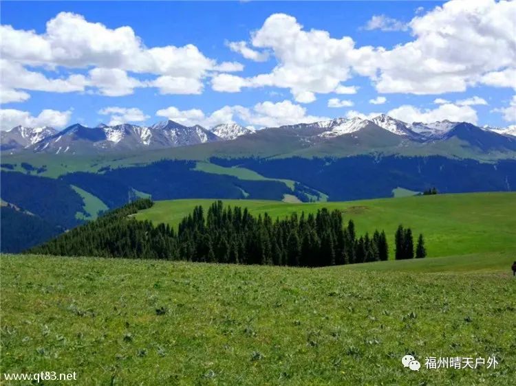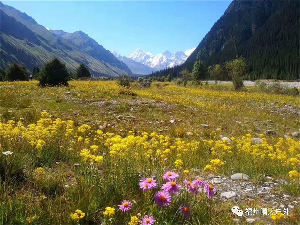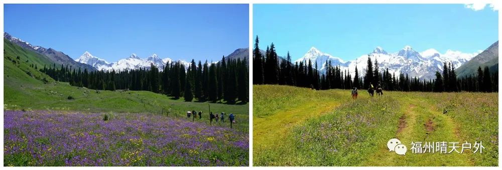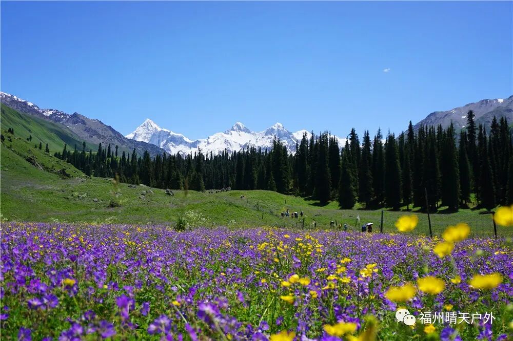 这里有绿蓝之水、草地、松林、雪山、淳朴的哈萨克牧民融在花海之中