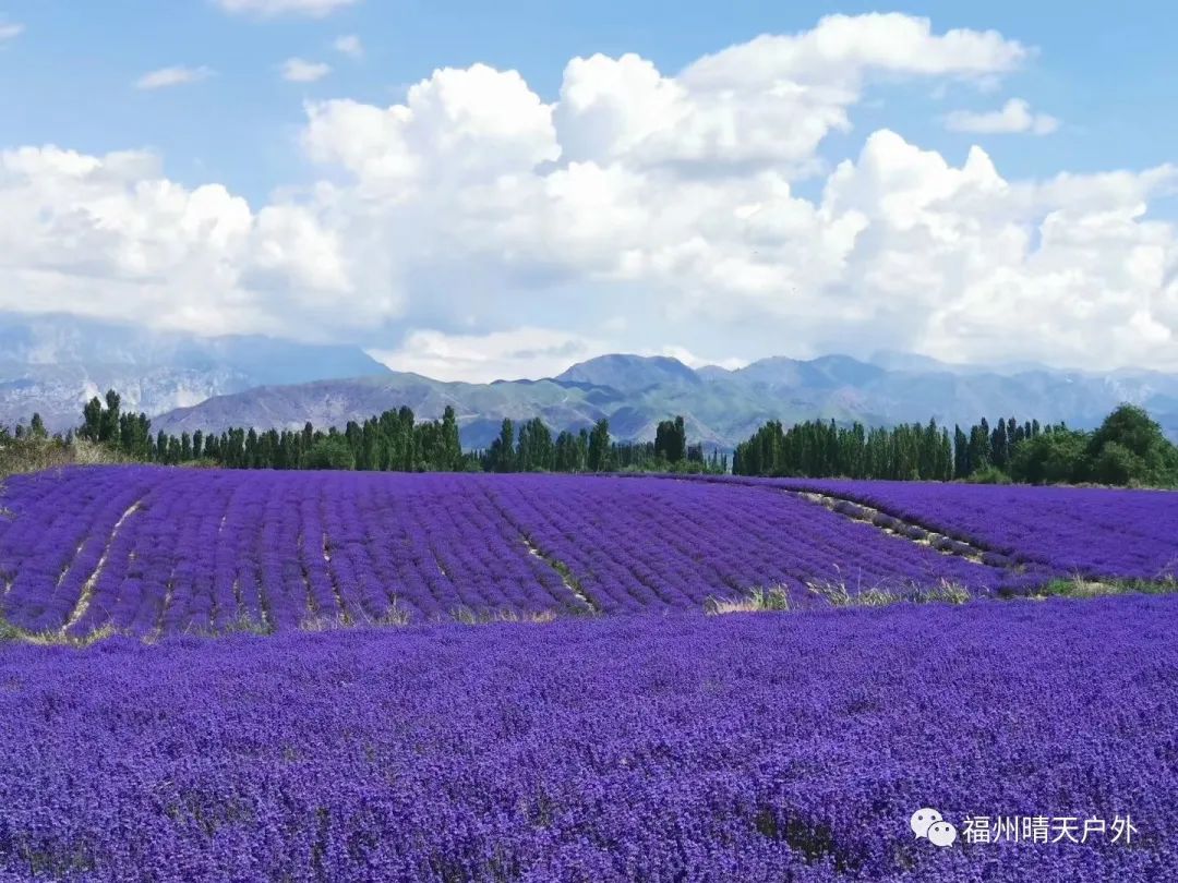 而后前往 65 团寻找早开的薰衣草农场;放眼望去,满地的紫蓝色小花一簇一簇,淡淡的幽香沁人心脾,宁静而深远。每年的六七月份 是最美的时节,小片小片蓝紫色薰衣草蔓延在山丘起伏的优美曲线上,而远 处是皑皑雪峰。