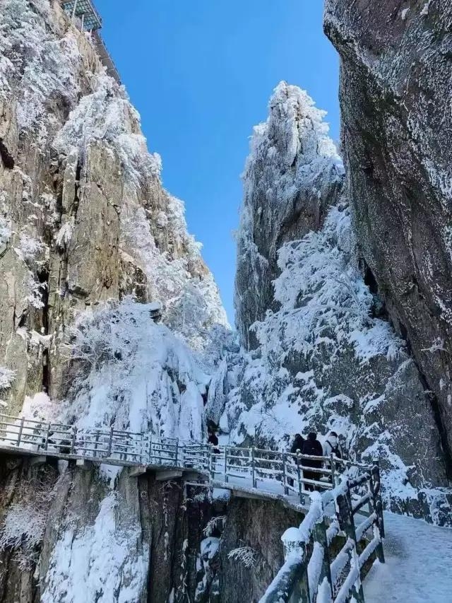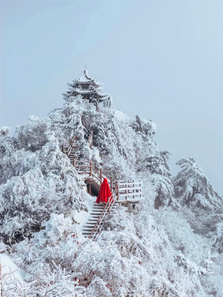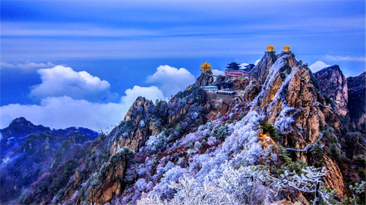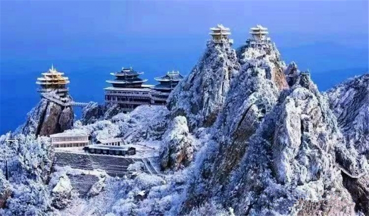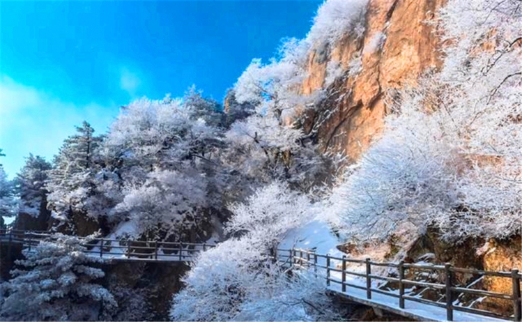 下雪的老君山,一山一水,一树一木,在蓝天白云的映衬下风情万种。寒潮刚过,雾气经山风吹拂,水汽凝结在树木的枝桠上,形成了美丽的雾凇景观,让前来冬游的游客流连忘返。