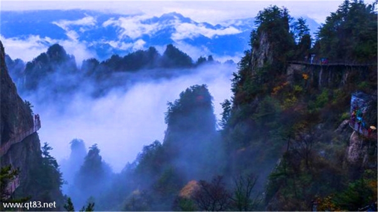 早餐后乘景区大索道(中灵索道)到达半山腰中天门广场老君山一级索道往返130,单上70,单下65费用不包含,徒步或者坐第二段峰林索道(往单上45,单下40费用不包含)去游览被称为小张家界的十里画屏,一步一景,移步易景。