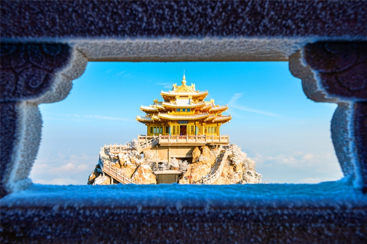 蓝天、白云、金殿、雾凇、